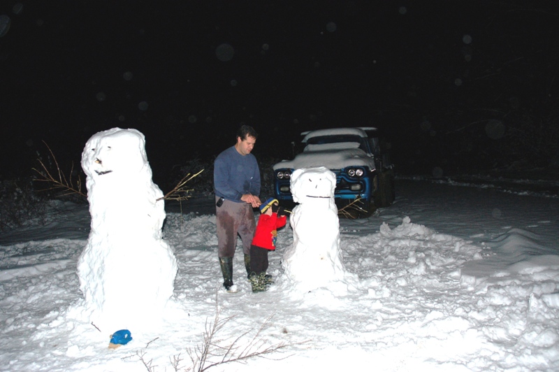 Snow in March helped us make a few snowmen, if only I had not misplaced