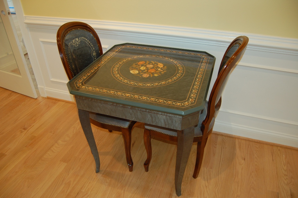 table setup and spent sunday putting gaming table (inlaind wood table from