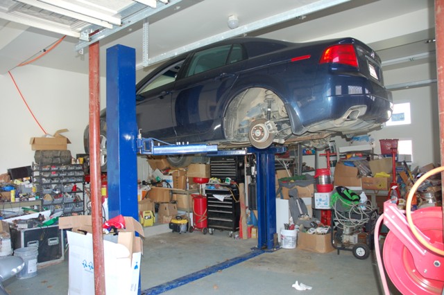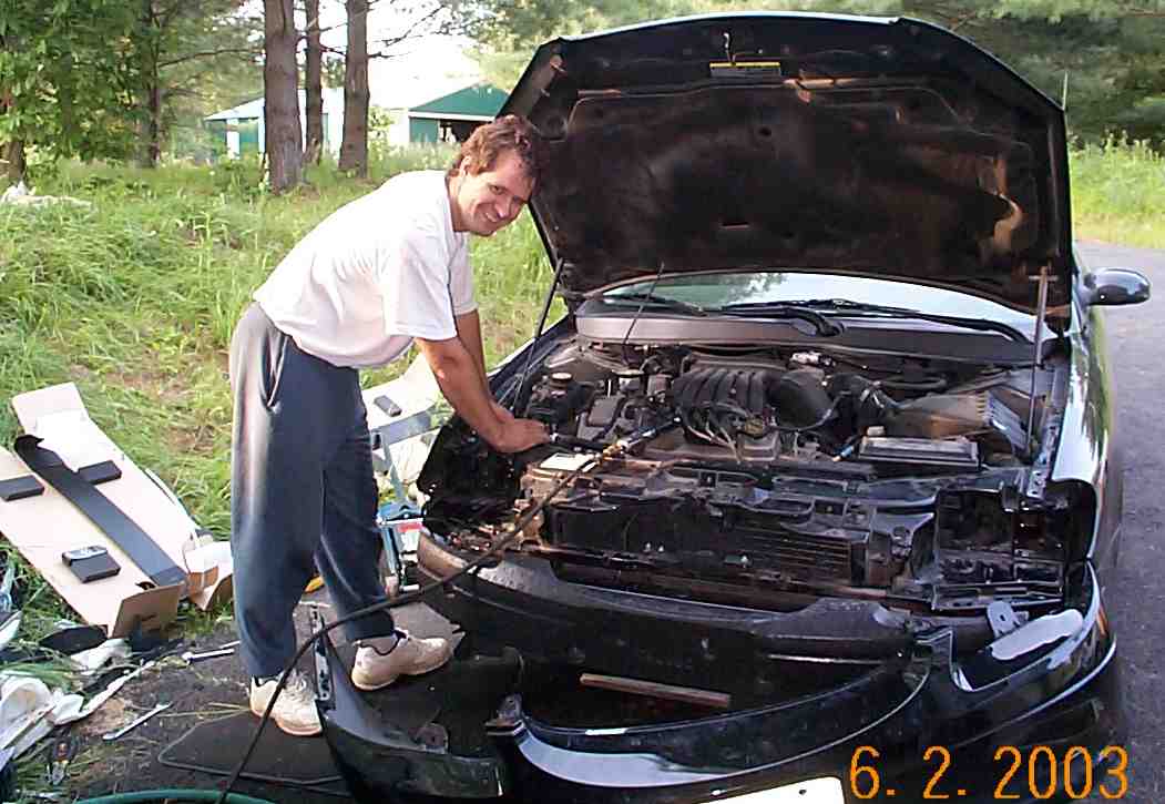 What I do when I am not working on the house :-) {fixing sisters car after ill matched battle between radiator/ undercarriage and parking lot sign}