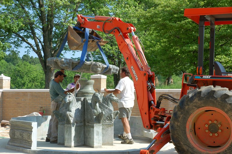 Marble fountain took some doing, it was a challenge even with the backhoe but the end result was worth it, Jamie Perkins my concrete guy was a big help: