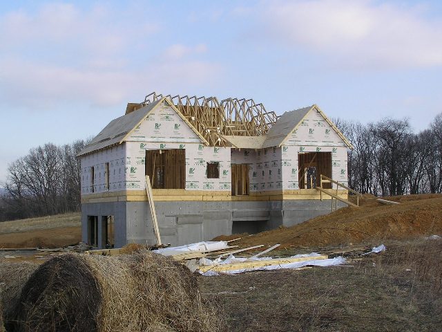 First floor walls going up today! 10/8/2003 Momma standing in the window